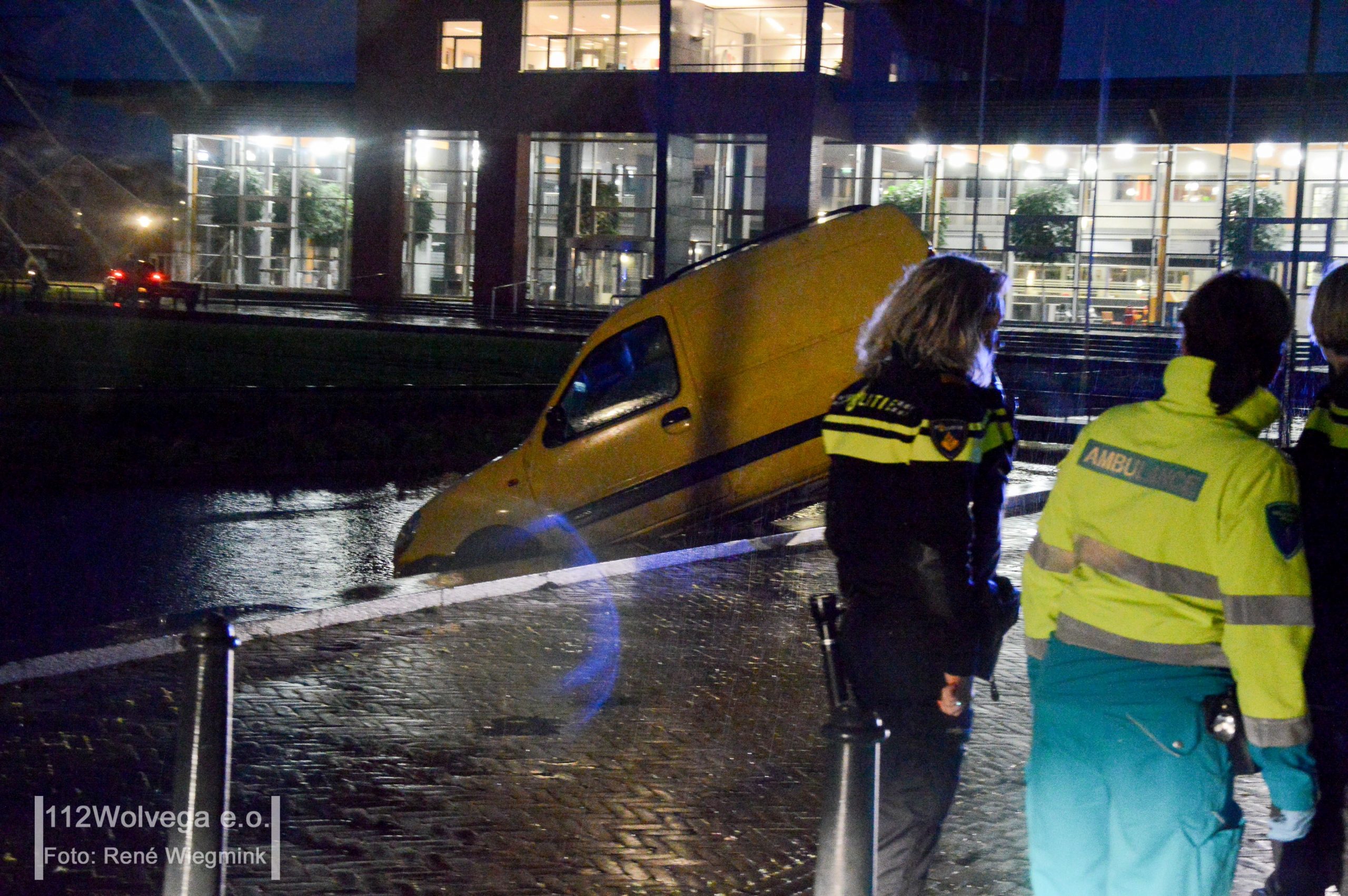 Wolvega – Voor het gemeentehuis van Weststellingwerf raakte woensdagavond kort voor half zes een auto te water in de vijver.