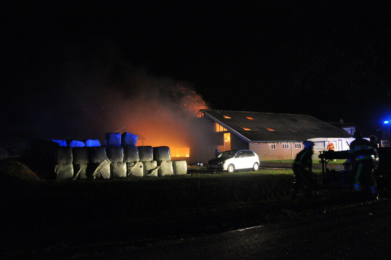 Zandhuizen – Bij een grote brand in een stal vol koeien in Zandhuizen zijn donderdagavond 110 koeien om het leven gekomen.