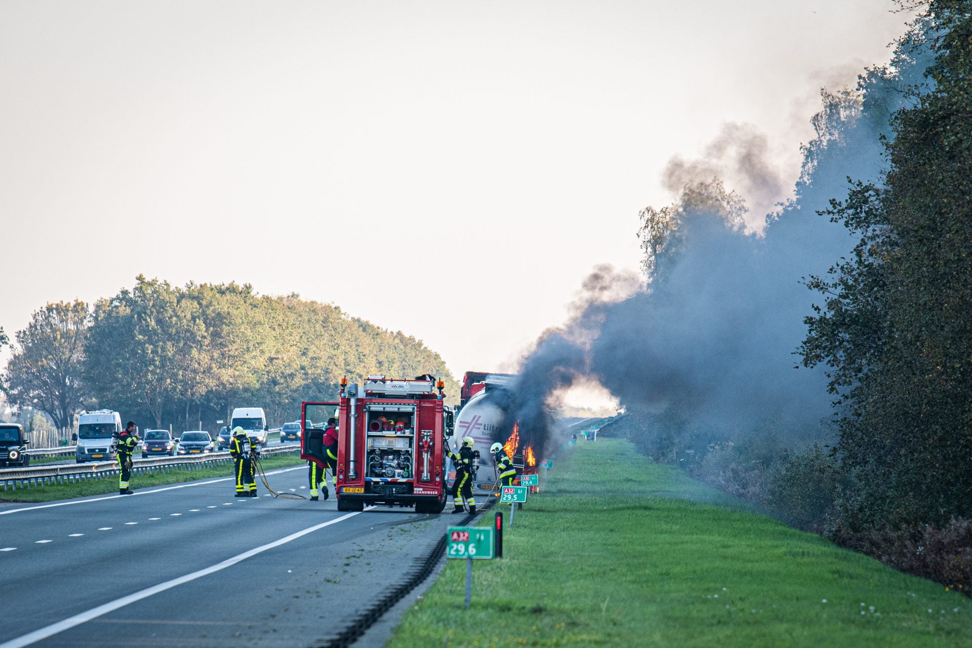 A32 richting Steenwijk uren dicht na vrachtwagenbrand