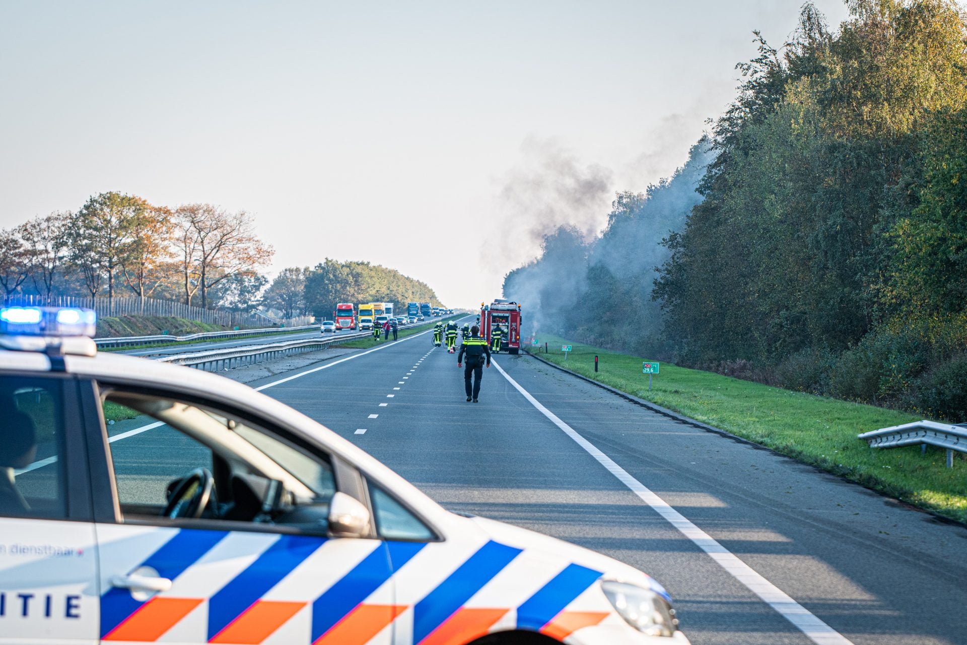 Wolvega – De A32 tussen Wolvega en Steenwijk-Noord is naar verwachting nog enkele uren afgesloten, zo laat de politie weten. Rond 15:15 uur ontstond er brand ter hoogte van de achteras van een vrachtwagentrailer, geladen met dierlijk vet. De chauffeur geeft aan dat de oorzaak hem mogelijk zit in een afgelopen wiellager.