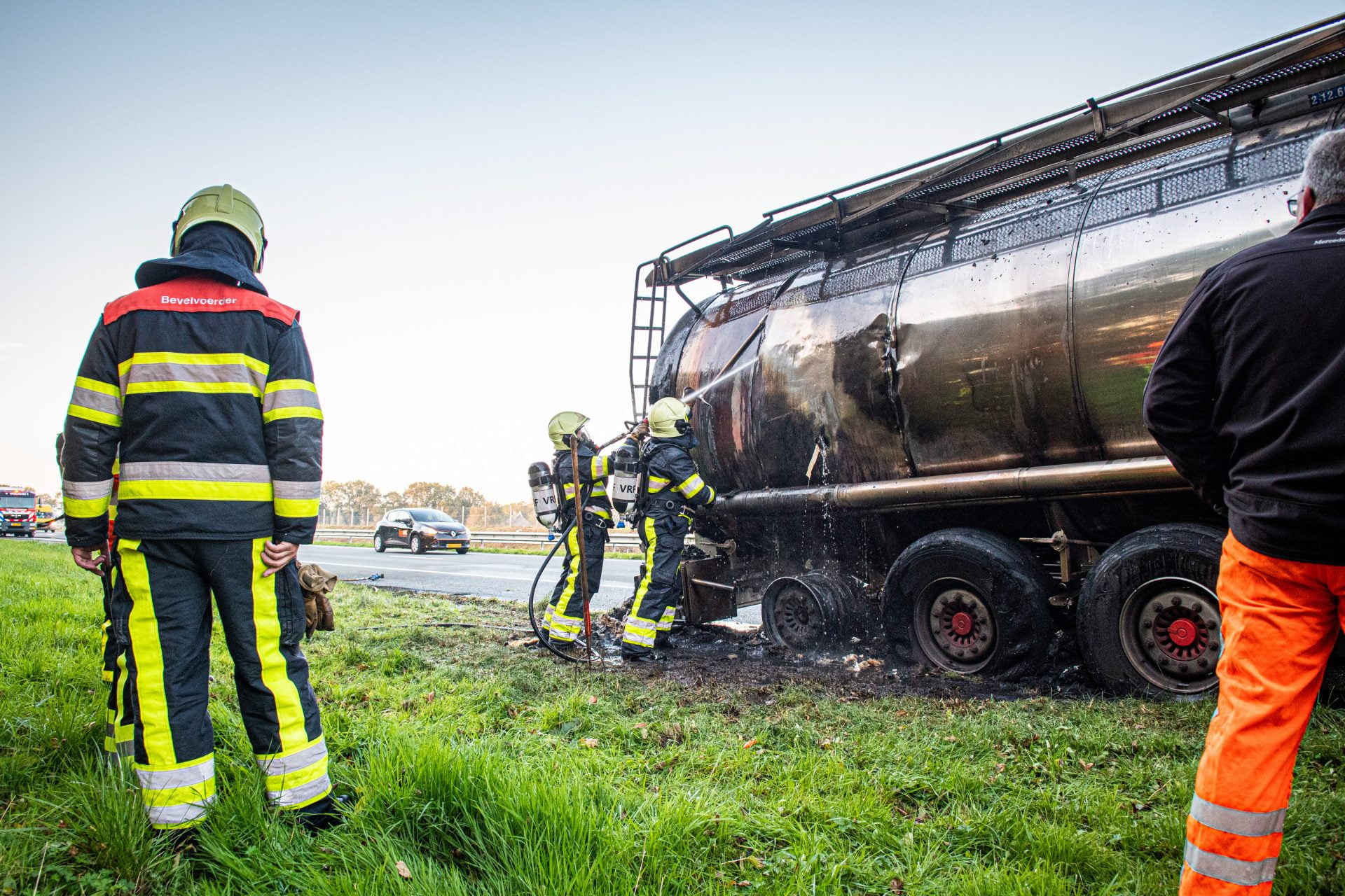 Automobilisten die tussen de brand en Wolvega in de file stonden konden na enkele uren de brand passeren om hun weg te vervolgen. Hoelang de afsluiting nog precies van kracht gaat zijn is niet bekend. Eerst moet het gevaar zijn geweken, waarna de vracht wordt overgepompt in een andere bulkvrachtwagen.