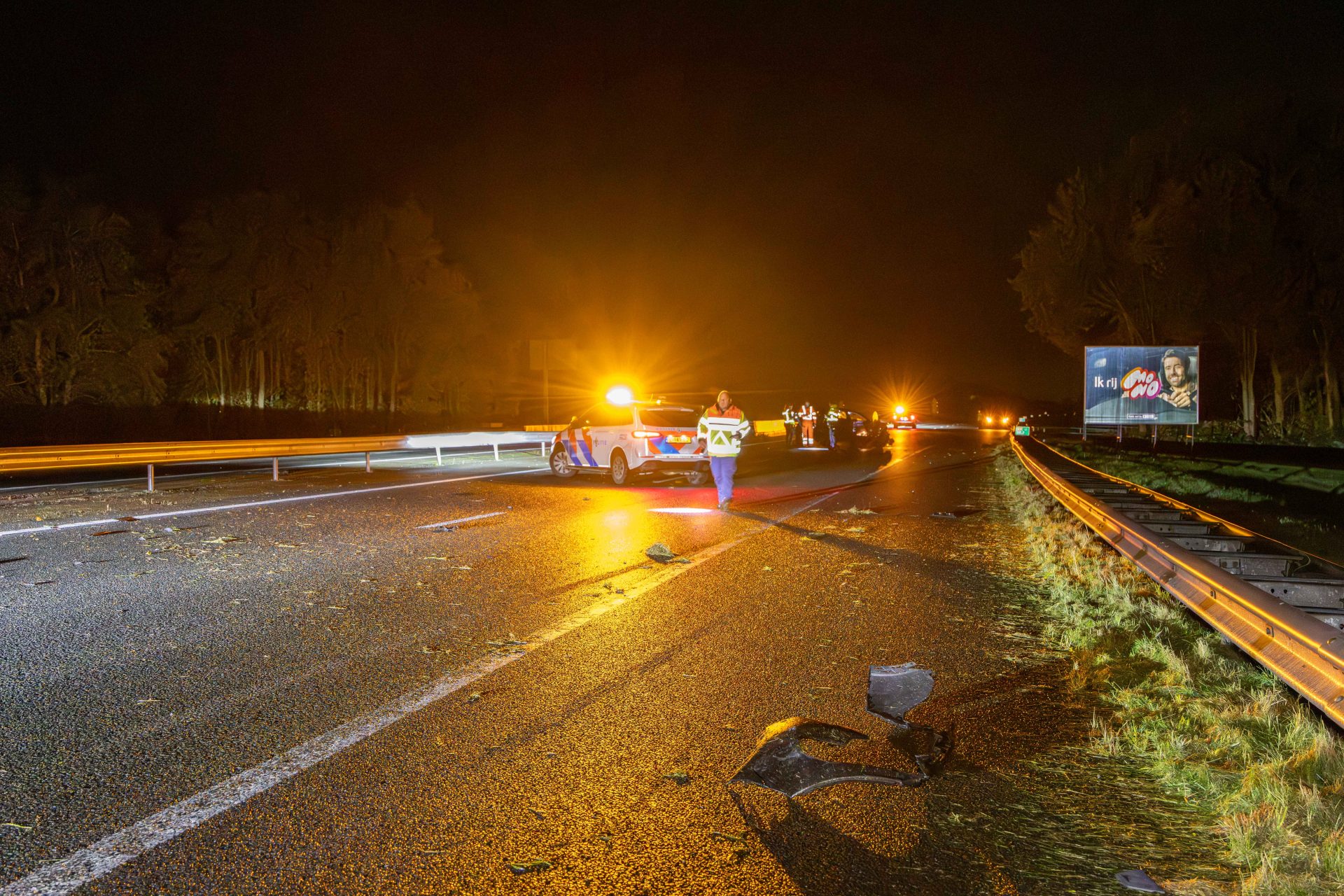 OLDEHOLTWOLDE – In de nacht van zaterdag op zondag zijn twee auto’s met elkaar in botsing gekomen op de A32.