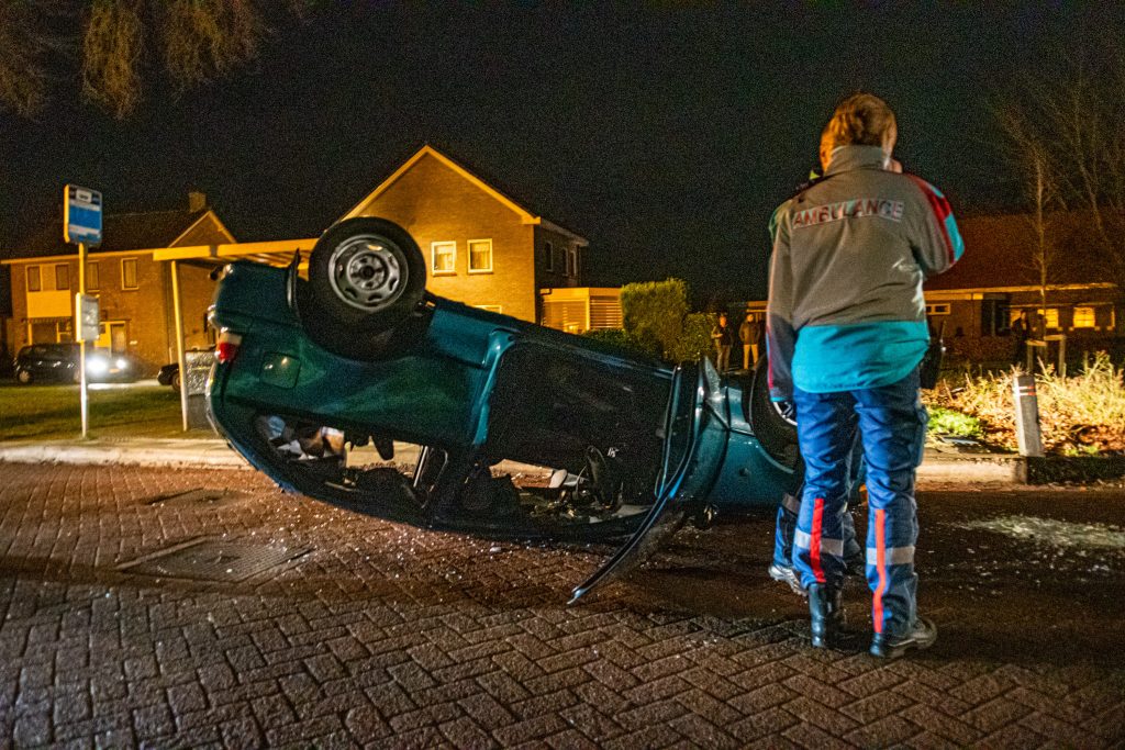 Noordwolde – Op de Nieuweweg in Noordwolde is vanavond een automobiliste over de kop geslagen met haar auto bij een eenzijdig ongeval. Als een klein wonder raakte er niemand gewond, zo vertelt één van de agenten.