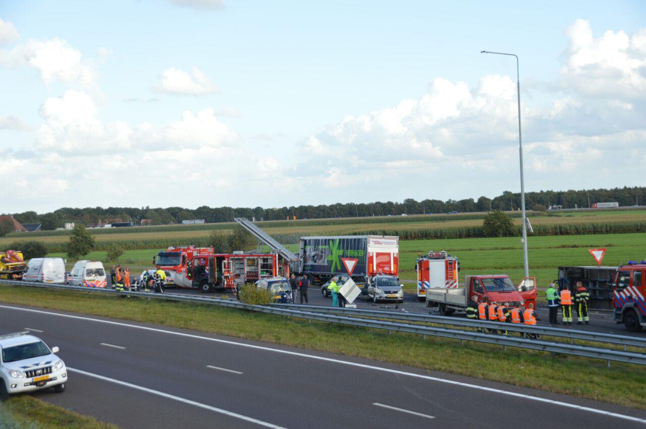 De 67-jarige stond in de file voor de rotonde Joure. Door nog onbekende oorzaak botste een bestelbus achterop de wagen van de Groninger. De auto van het slachtoffer sloeg door de klap over de kop en raakte vervolgens de auto die voor hem reed. Hierbij raakten nog twee personen (leeftijd en woonplaats nog onbekend) gewond. In deze auto zaten onder andere drie kinderen. De weg raakte door de aanrijding versperd en werd voor het onderzoek van de verkeerspolitie geruime tijd afgesloten. De bestuurder ( leeftijd nog onbekend) van de bestelbus wordt na behandeling in het ziekenhuis op het politiebureau verhoord.