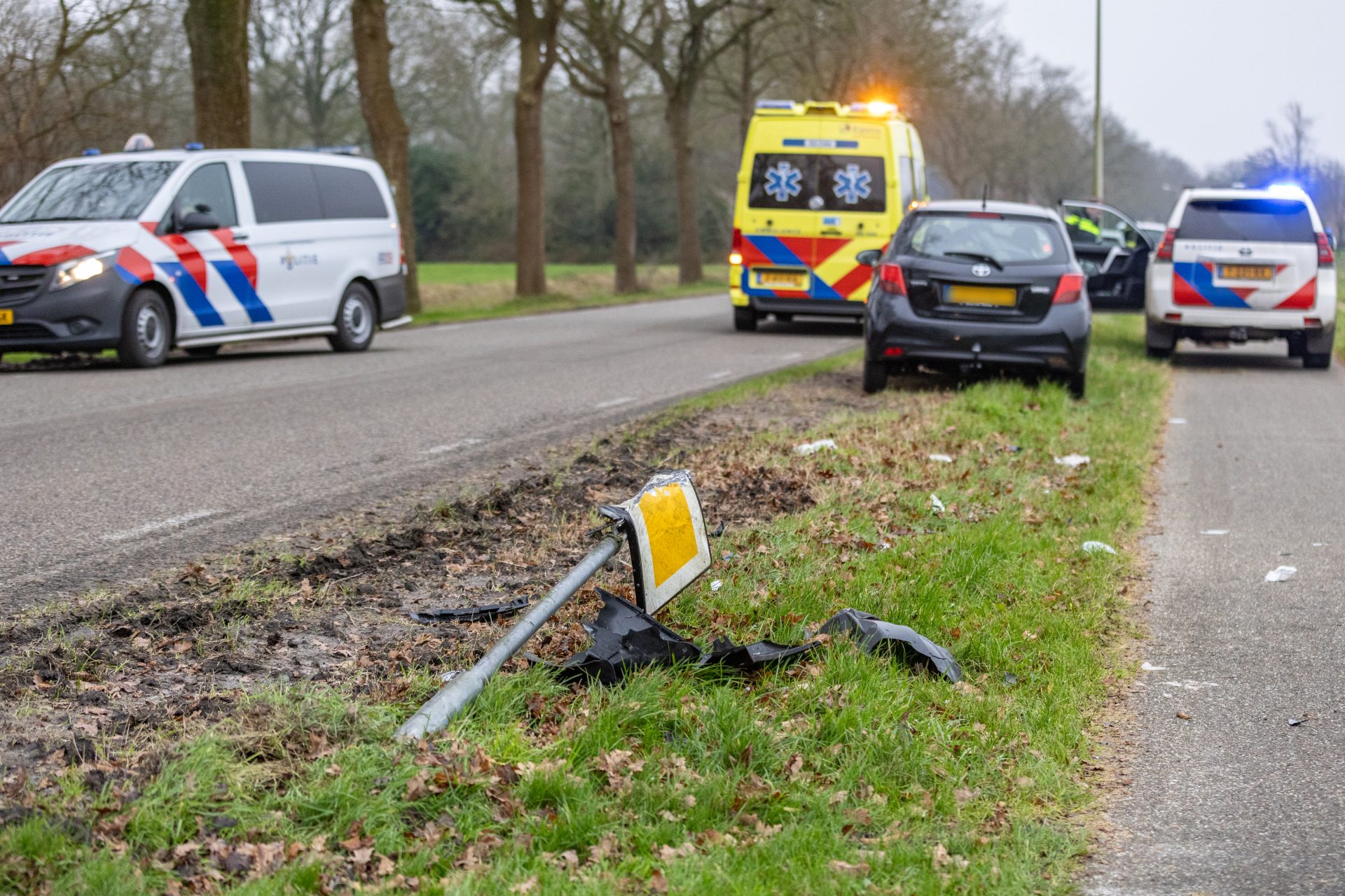 Rond 9:30 uur ging het mis. De automobilist reed Noordwolde uit als hij wordt ingehaald door een ander voertuig. De bestuurder schrok hier van en week uit de berm in. Hierbij reed hij een paal omver en raakte zijn auto flink beschadigd.