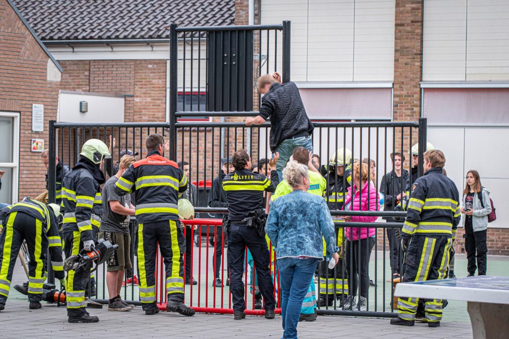 De politie was als eerste ter plaatse en heeft getracht om de jongen middels een breekijzer te bevrijden, door het metaal om te buigen. Dit heeft niet mogen baten, waarop werd besloten de komst van de brandweer af te wachten. De brandweerlieden wisten vervolgens met speciaal redgereedschap het been van de jongen meer ruimte te geven, waardoor hij kon ”ontsnappen”.