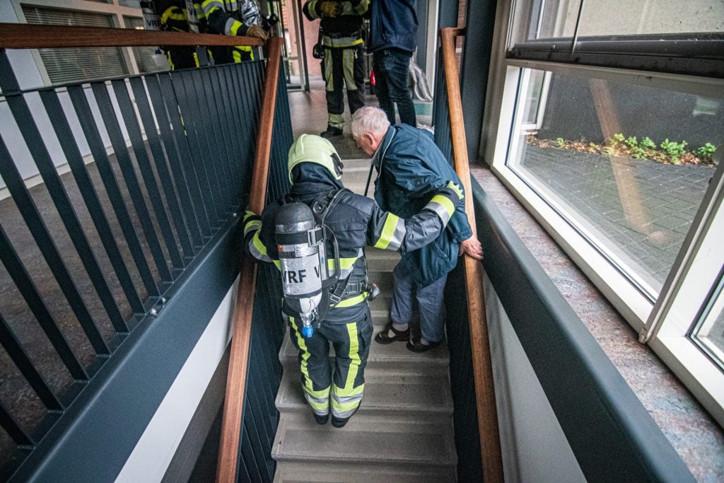Wolvega – Meerdere brandweerwagens en een afgaand brandalarm bij appartementencomplex Frieslandia aan de Haulerdwarsweg woensdagavond, maar van een brand was geen sprake. De brandweer van Wolvega hield hier in samenwerking met de bewoners een ontruimingsoefening.