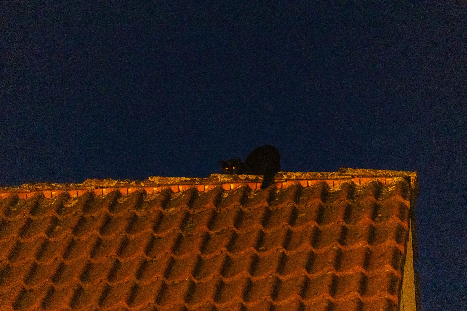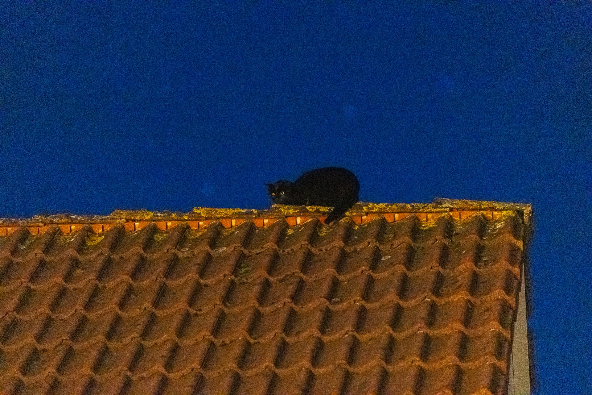 De poes, Ginny, hield evenwicht op de dakpannen maar kwam niet meer naar beneden. Al de hele dag wandelde Ginny heen en weer. Hoe de poes zo hoog op de daken kon komen is niet duidelijk.