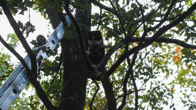 MILDAM – Een kat is zaterdagmorgen gered door de brandweer van Nieuwehorne. Het beestje zat boven in de boom.