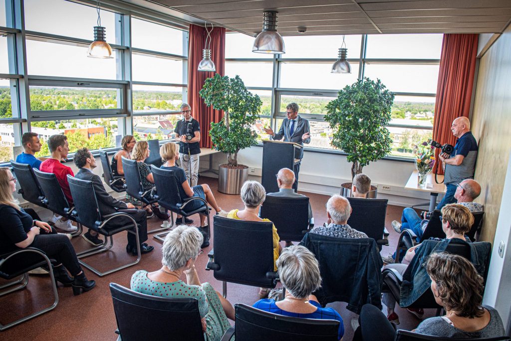 De twee vrouwen, mevr Vliegendehond en Visser, zijn vrijdagmiddag op de 8e verdieping van het gemeentehuis in Wolvega de penning opgespeld. Dit alles onder toeziend oog van de twee te water geraakte personen. Volgens de maatschappij een unicum, omdat de geredde personen vaker niet dan wel aanwezig wensen te zijn.