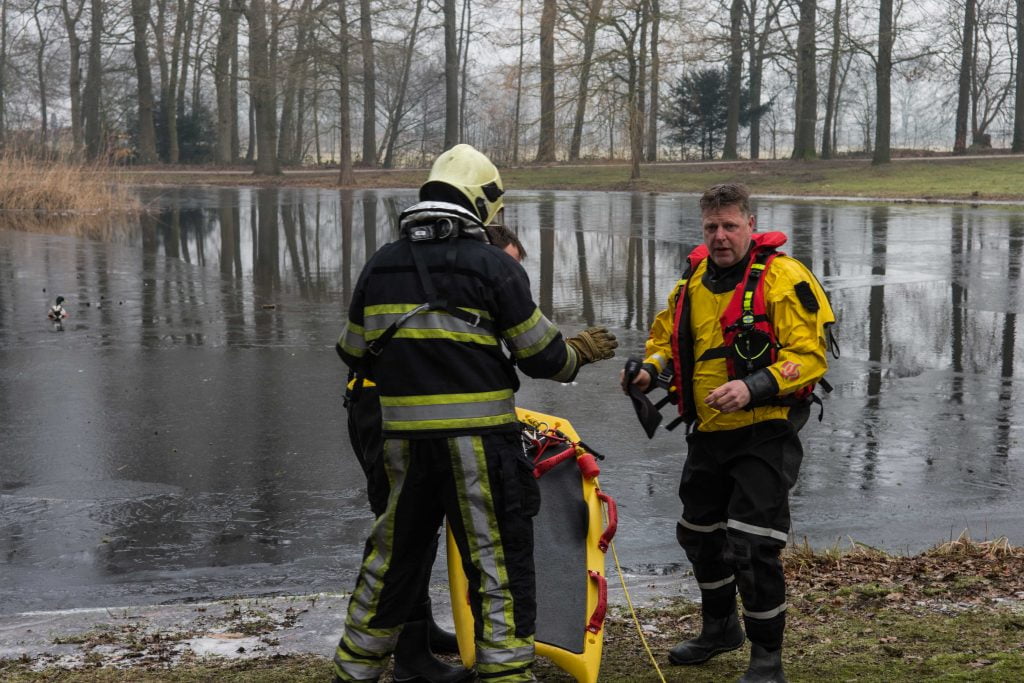 Wolvega – De brandweer moest maandagochtend rond kwart voor elf uitrukken naar park de Nieuwe Aanleg. Volgens de melding van de dierenambulance zou hier een eend vast zitten op het ijs.