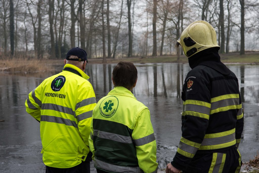 Medewerkers van de dierenambulance Heerenveen die al naar de eend waren toegekomen hadden in een poging de eend te ‘verschrikken’ zodat hij zelf weg ging, spullen richting de eend gegooid. Deze leek echter muurvast te zitten in het ijs.