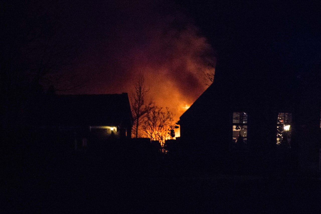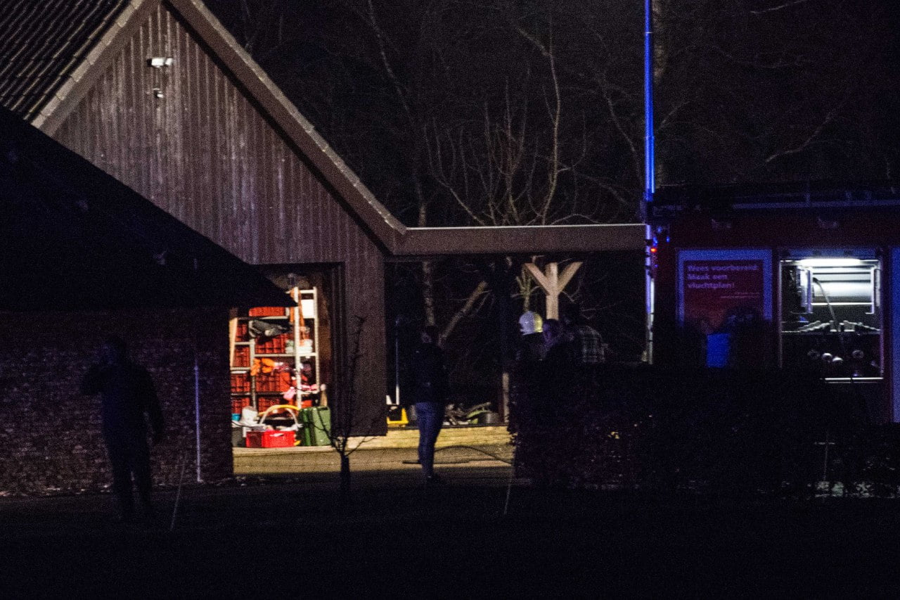 In een schuurtje achter het pand was door onbekende oorzaak brand ontstaan in een garagebox. Bij aankomst van de brandweer stond het gehele dak in lichterlaaie.