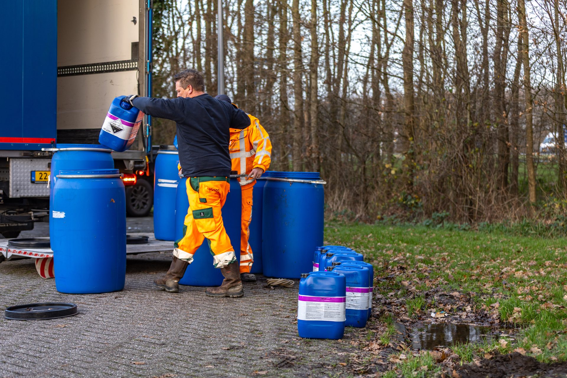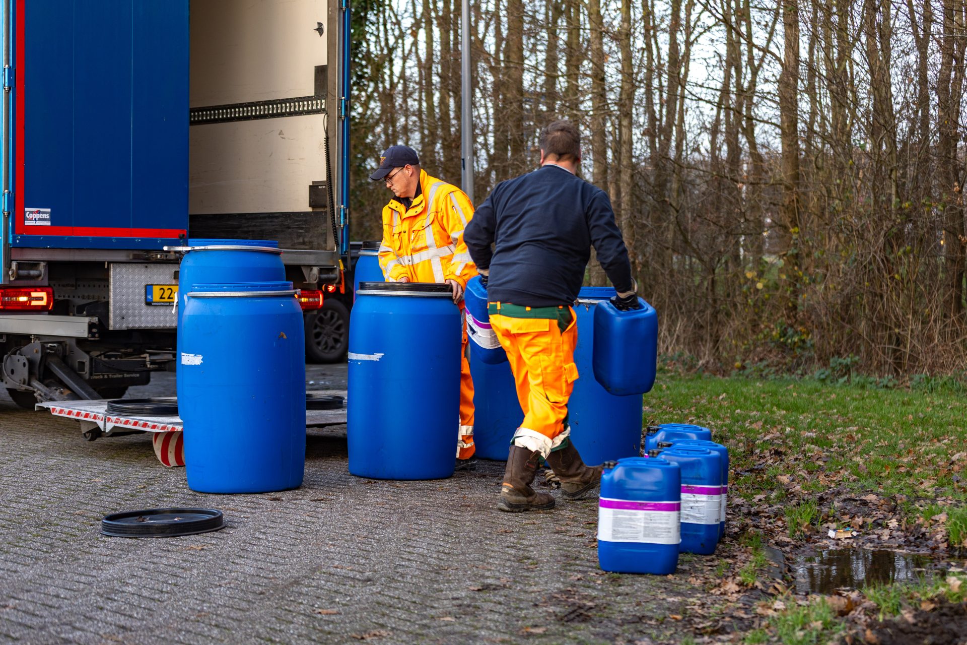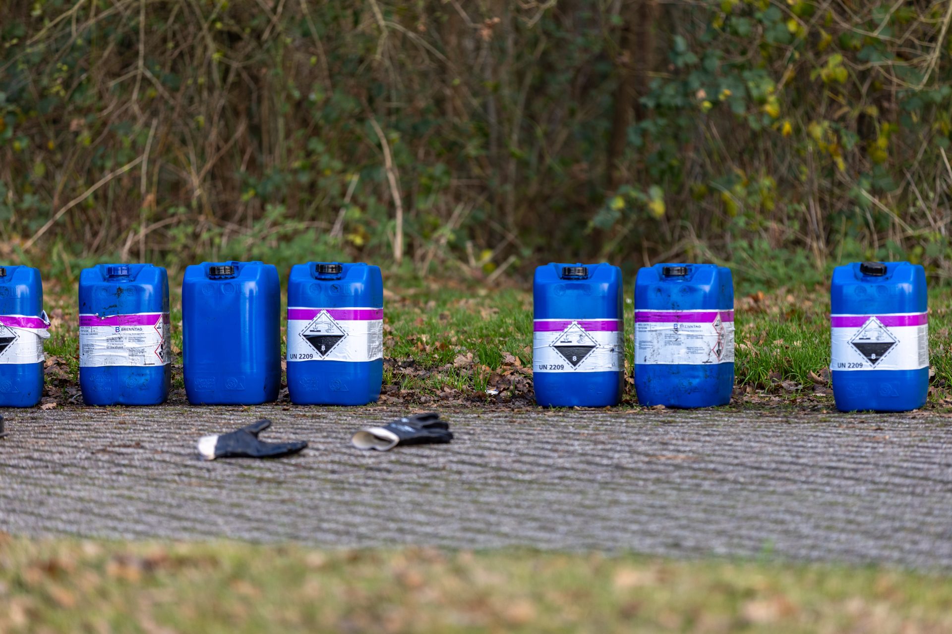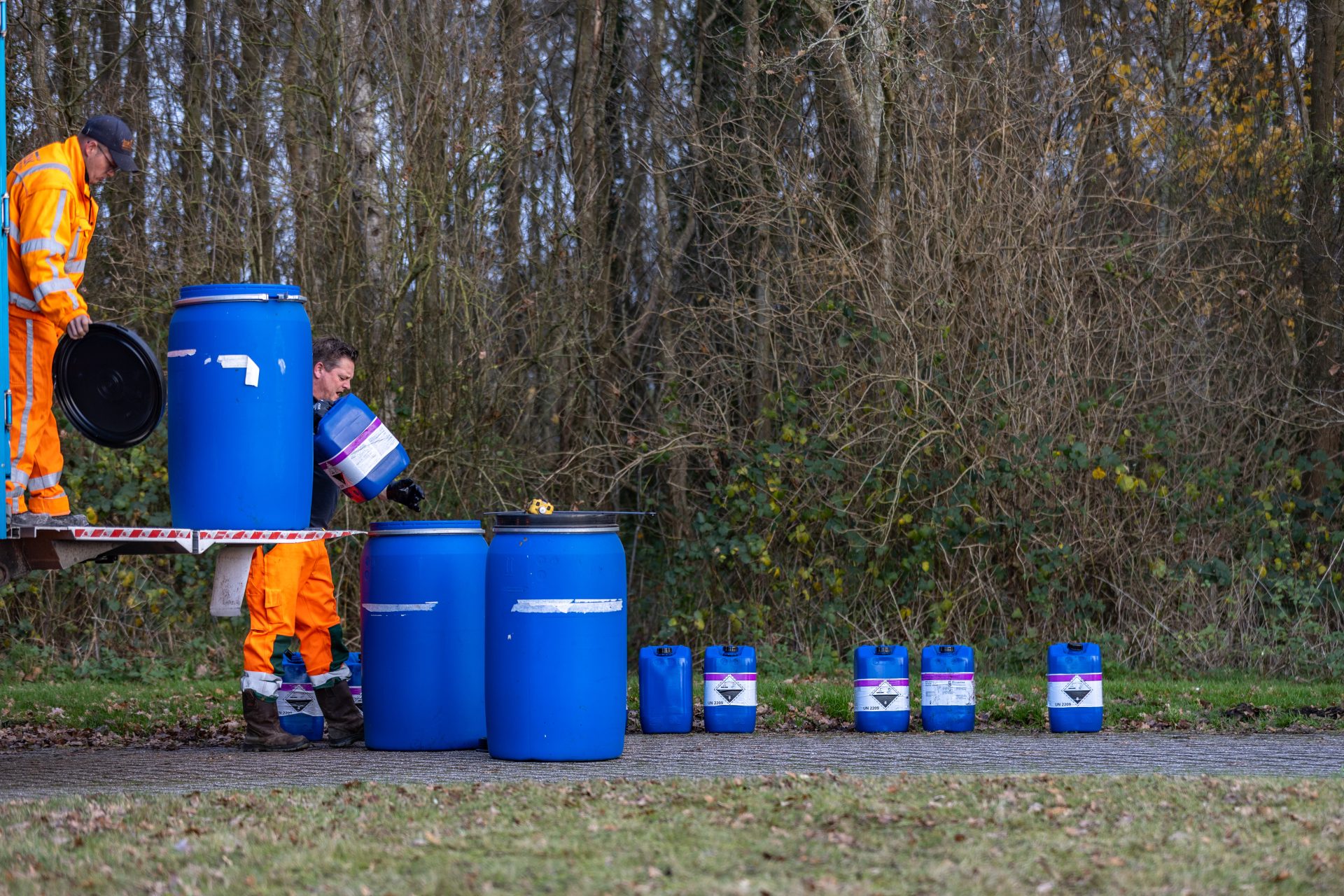 Om 10:30 uur zijn de vaten aangetroffen door de handhaving. De handhavers hebben ter plekke assistentie van de politie gevraagd en de brandweer gealarmeerd omdat niet duidelijk was om wat voor gevaarlijke stoffen het ging.