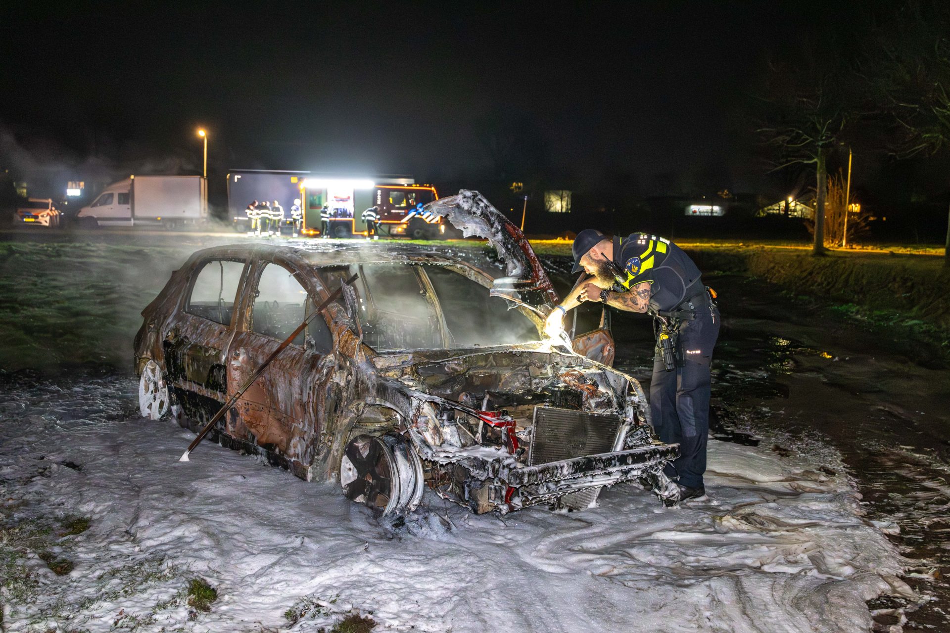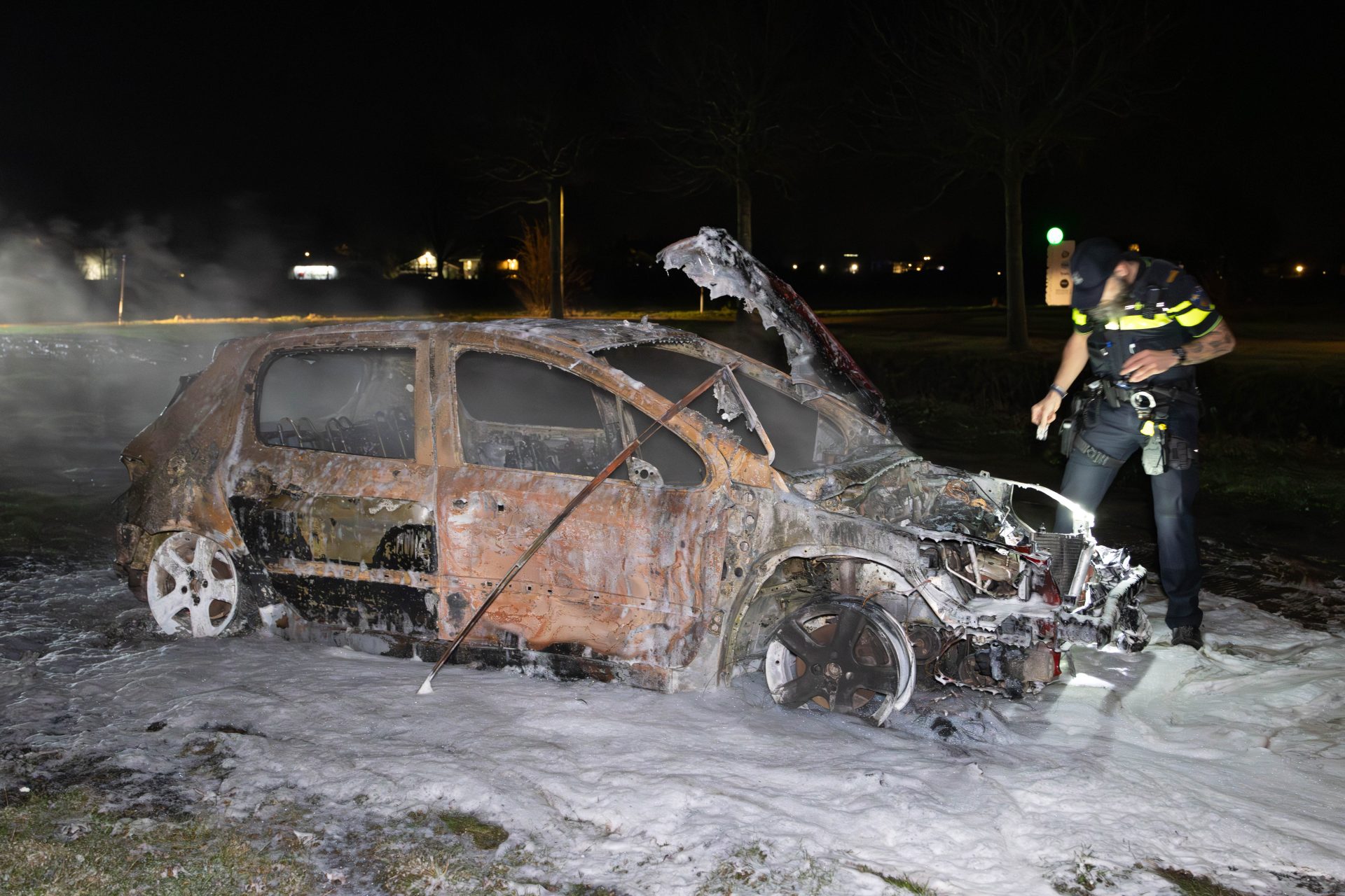WOLVEGA – Een personenauto is vrijdagavond volledig uitgebrand aan de Platinastraat.