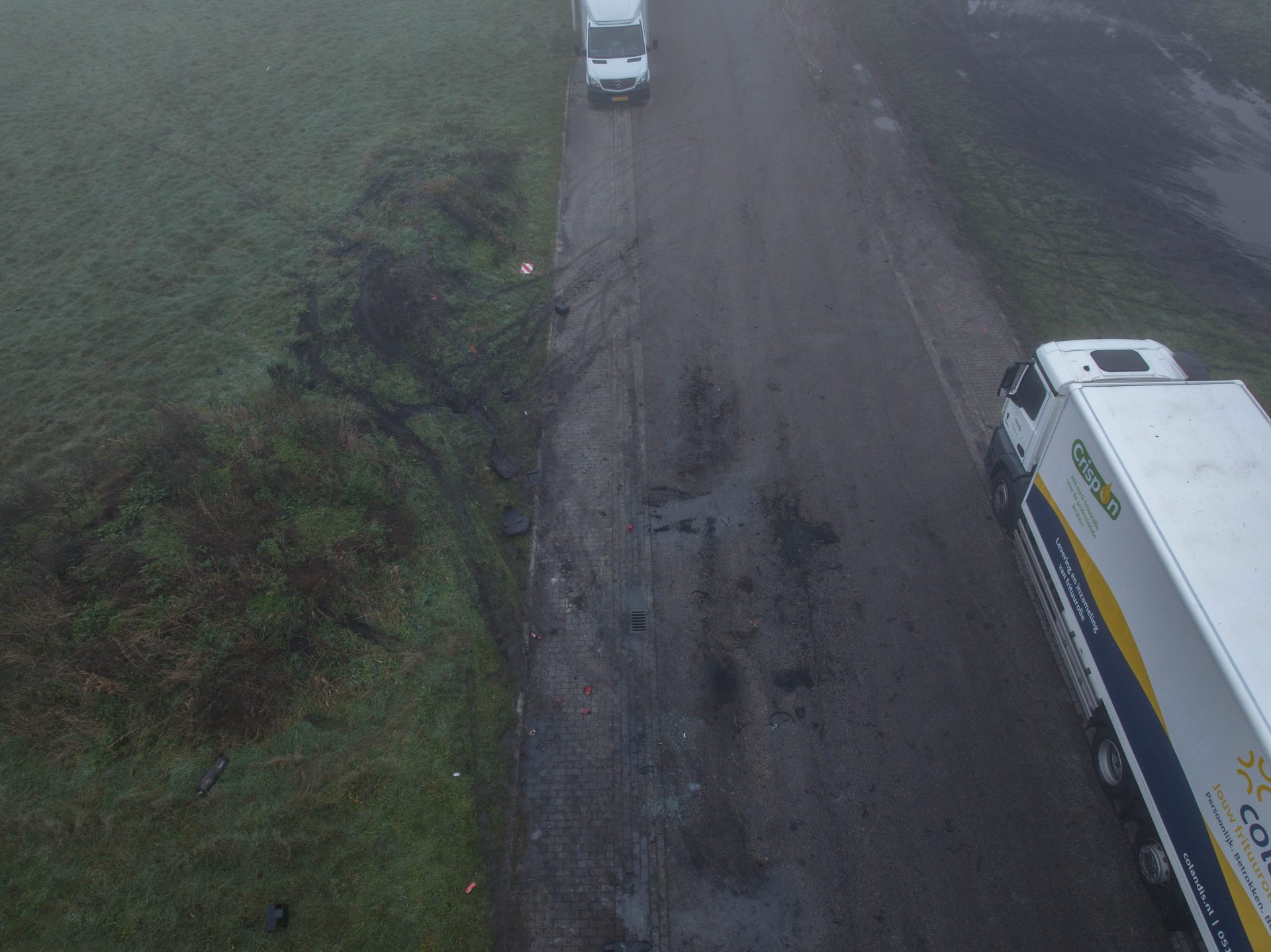 Bij de autobrand is een grote ravage aangericht. Volgens getuigen was de auto lange tijd op de industrie aan het crossen en stunten waarbij diverse onderdelen verloren zijn en olie is gelekt. Bij daglicht is de ravage goed zichtbaar. De auto zou nadat deze kapot gereden was, in brand gestoken zijn.