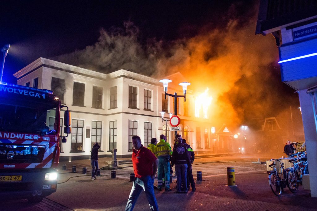 Wolvega – In het oude gemeentehuis aan de Heerenveenseweg in Wolvega is dinsdagavond brand ontstaan. Al snel sloegen de vlammen uit het oude pand, dat een rijksmonument is.