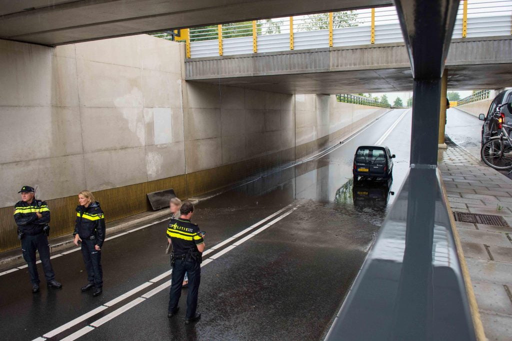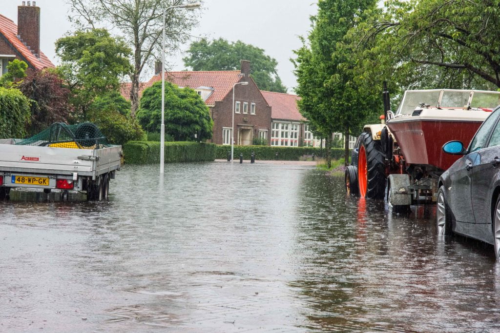 Niet alleen de tunnel stond blank, ook diverse straten elders in het dorp vormden een rivier. Ook elders in het Noorden gaat het flink tekeer. Daar waar in Wolvega de meeste regen is gevallen, moet voor de rest van Friesland en Groningen het ergste nog komen.