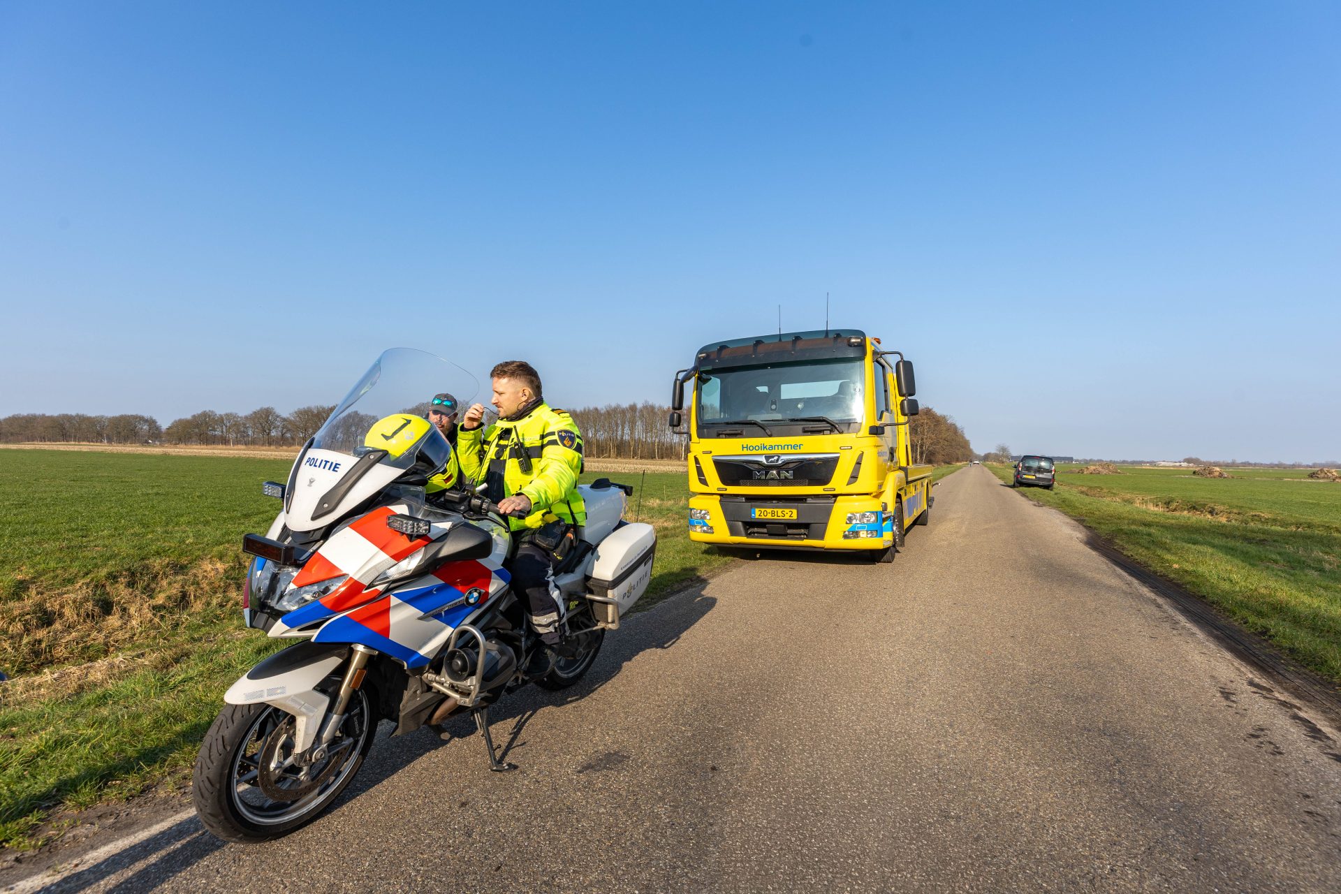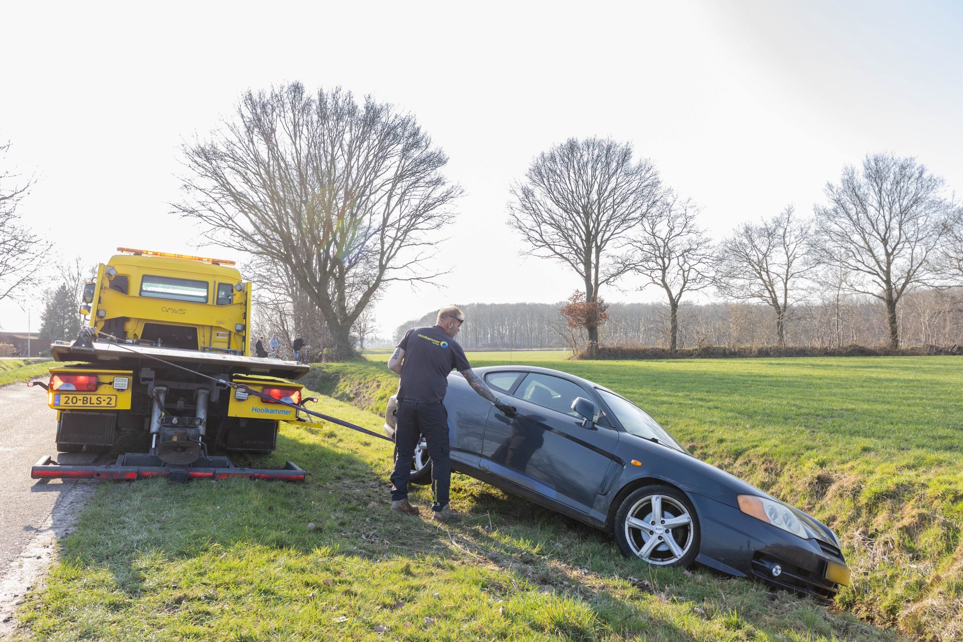 Een berger is ter plaatse gekomen om de auto af te slepen.