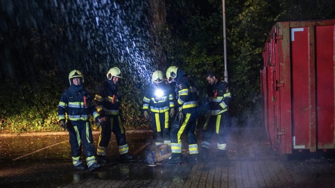 Veel blussen was niet nodig: het regende pijpenstelen. Uittrappen van het stapeltje bleek voldoende te zijn om het vuur te doven.