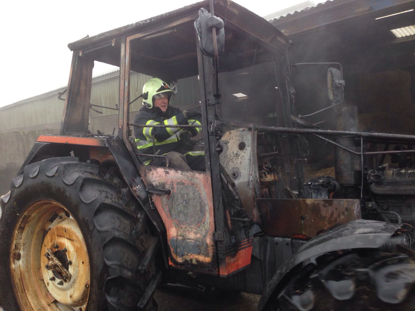 Munnekeburen – Vrijdagochtend rond half tien werd de brandweer van Scherpenzeel opgeroepen voor een land-/bouwvoertuig brand aan De Gracht.