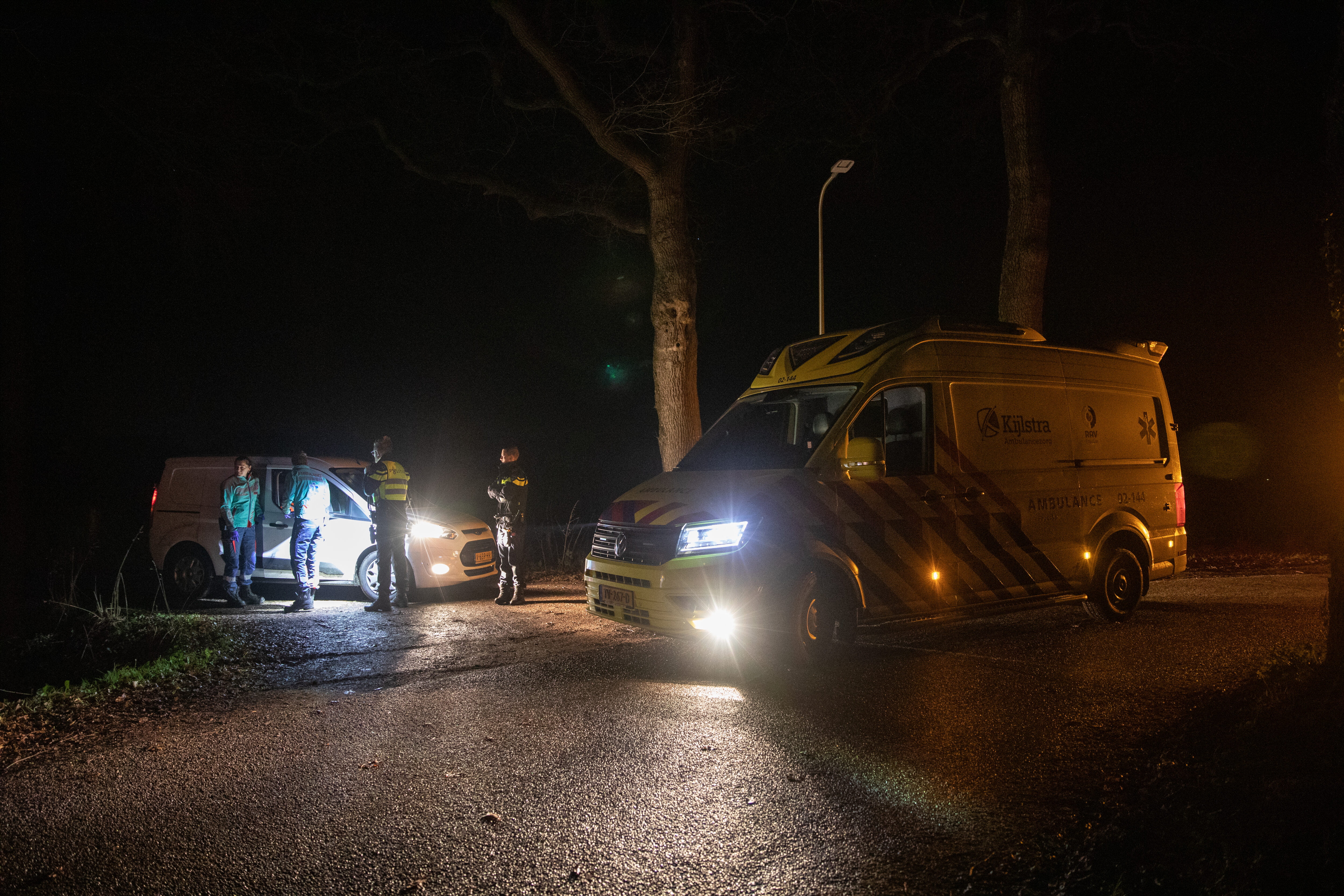 Een ambulance heeft de man behandeld in een ambulance en overgebracht naar ziekenhuis Tjongerschans in Heerenveen.
