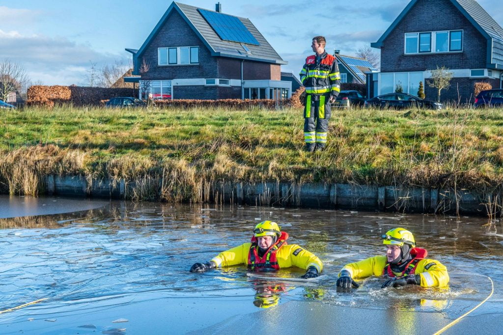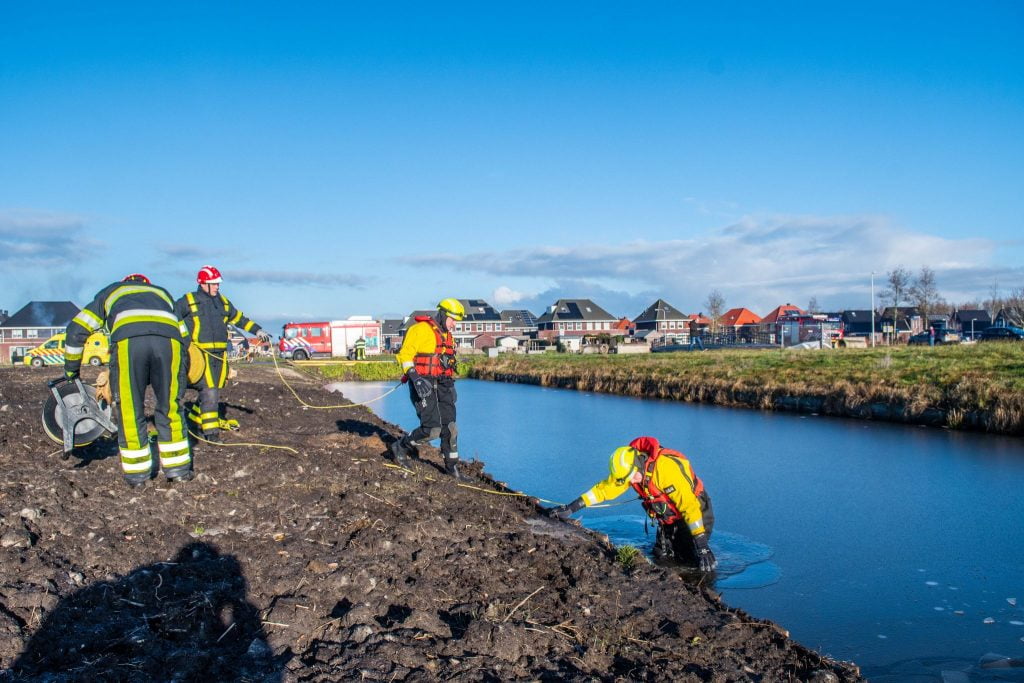 Wolvega – Brandweerlieden van brandweer Wolvega hebben zondagochtend een duik genomen in het water langs het Heideblauwtje in de Lindewijk, nadat er een melding kwam van een mogelijke persoon te water.