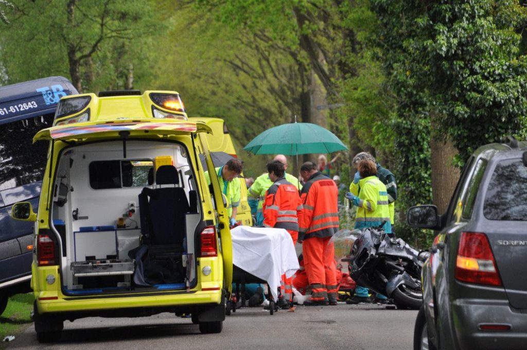 Ter plaatse bleek de motorrijder hard in de zijkant van het busje te zijn gebotst. Het taxibusje belandde door het ongeval in de sloot.
