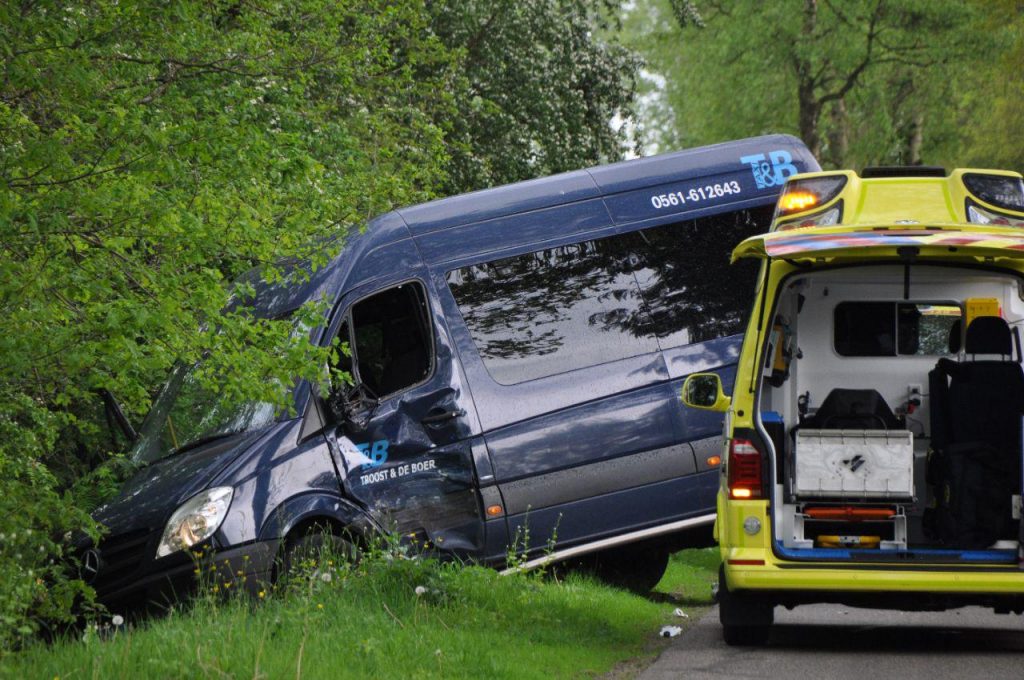 Ter plaatse bleek de motorrijder hard in de zijkant van het busje te zijn gebotst. Het taxibusje belandde door het ongeval in de sloot.