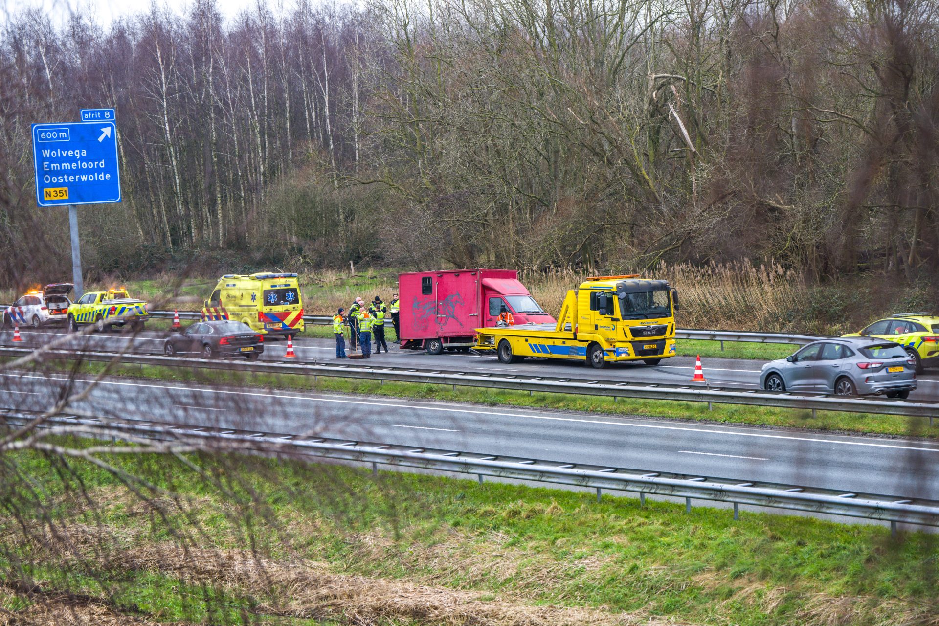 Voor de berging van de bestelbus is de A32 richting Friesland enige tijd opnieuw afgesloten geweest. Voor alsnog is het niet bekend of er iemand gewond is geraakt. Ten tijde van het ongeluk stond er geen paard in de wagen.