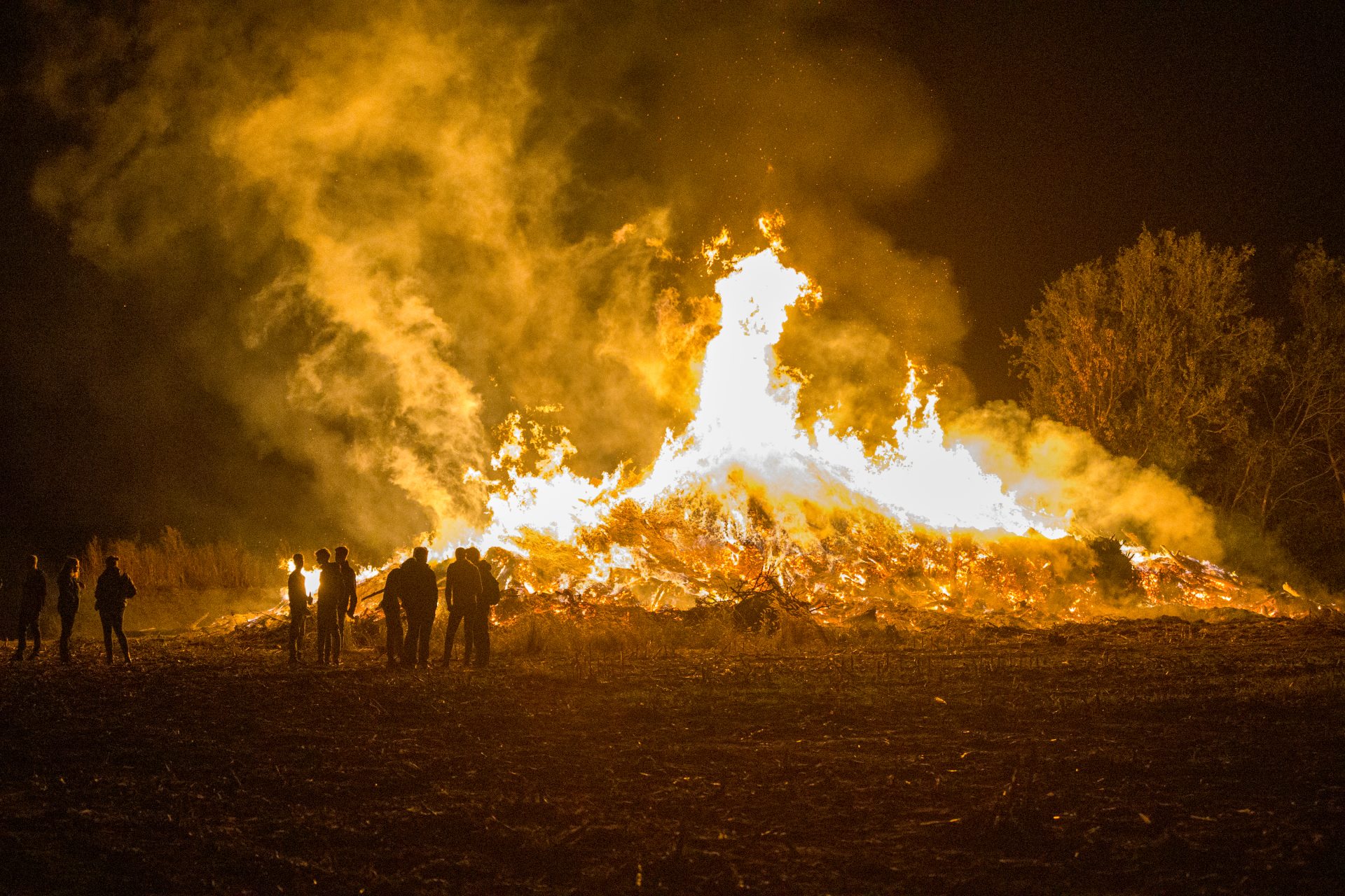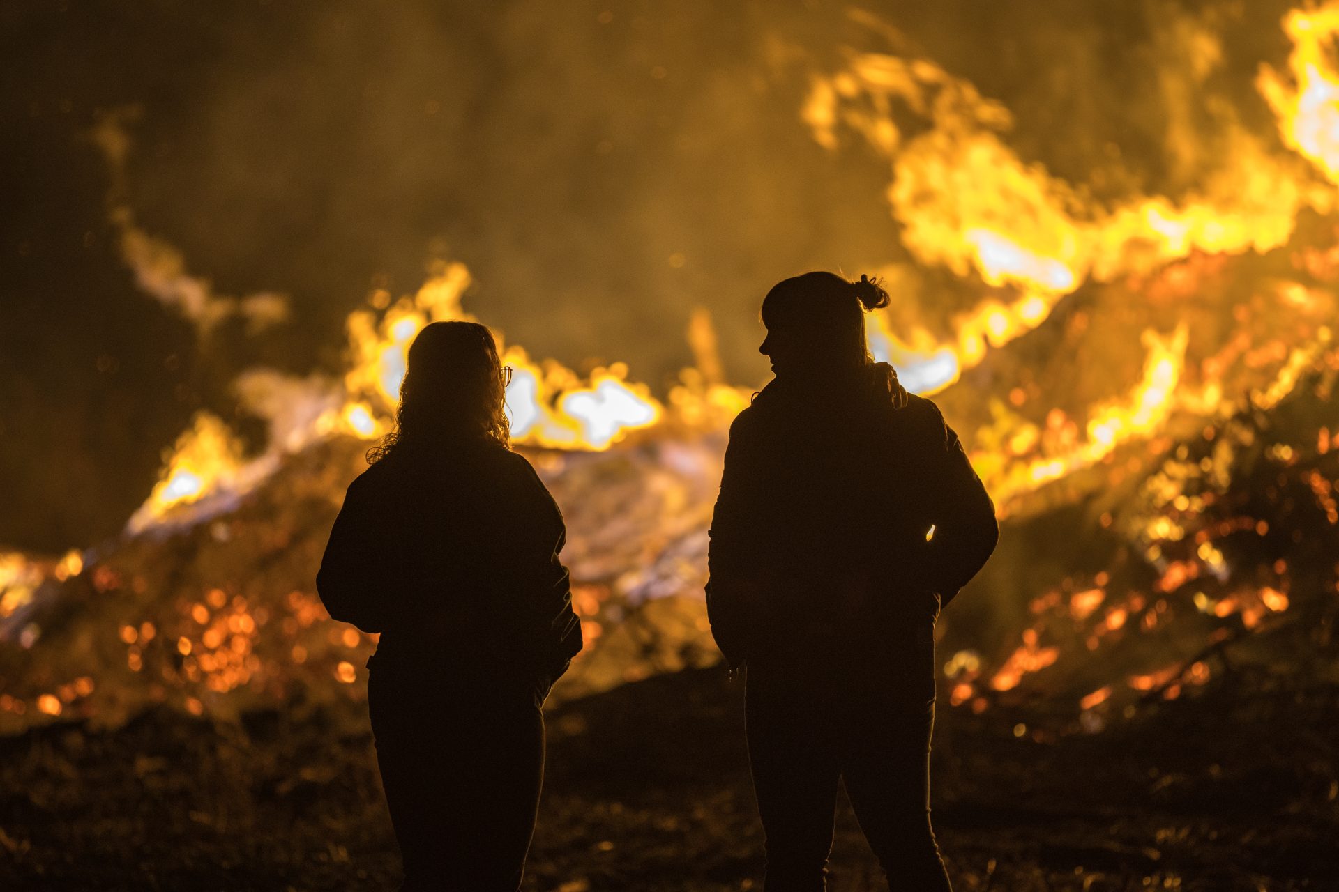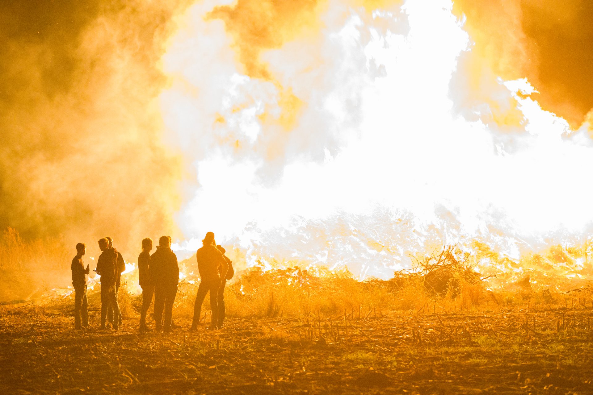 Handhavers zijn aanwezig om erop toe te zien dat alles netjes verloopt. Dankzij de gunstige weersomstandigheden kon het vuur dit keer zonder problemen doorgaan. Met het naverbranden van de paasbult komt er alsnog een symbolisch einde aan het paasvuurseizoen van 2025.