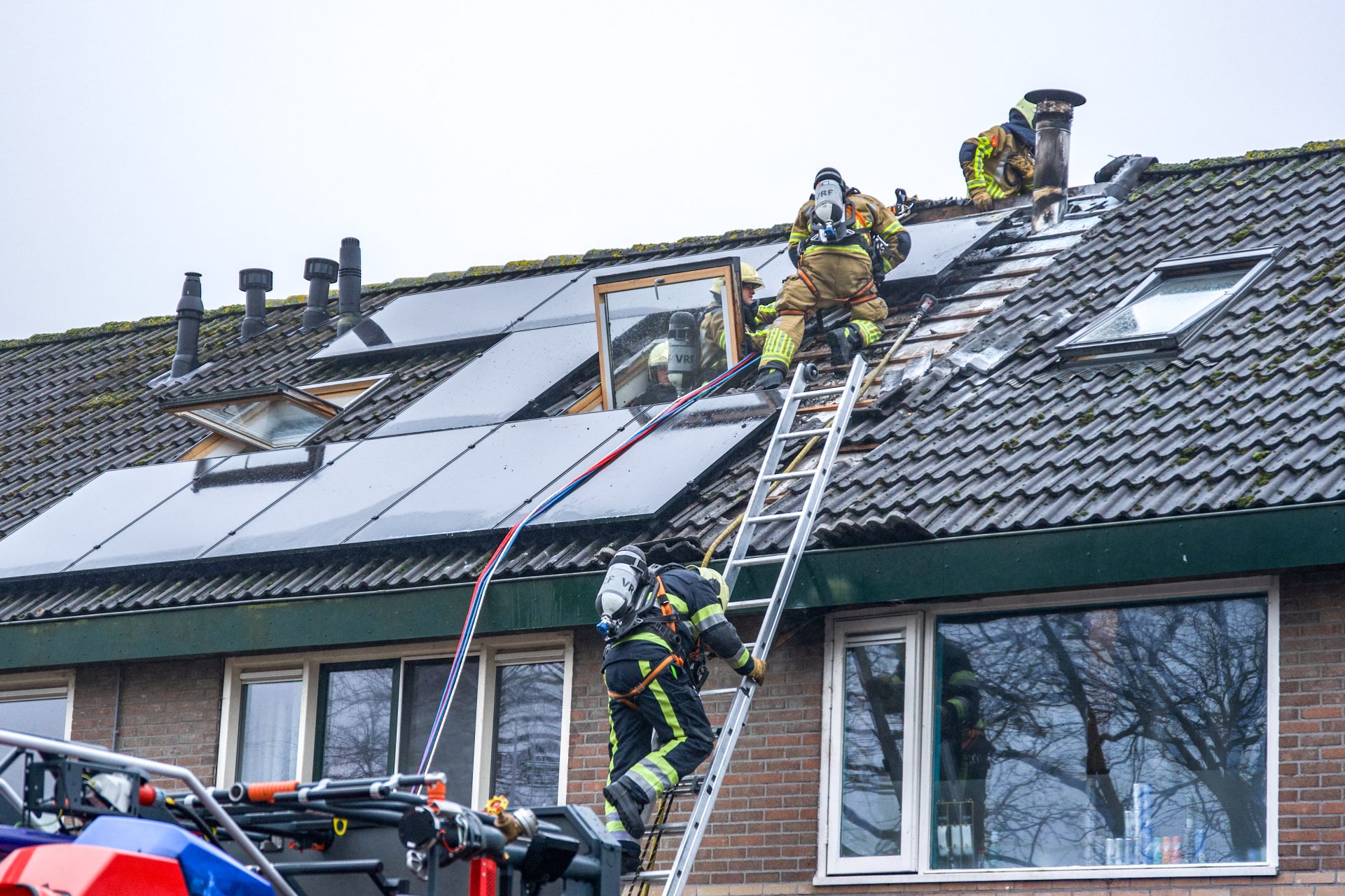 Volgens de brandweer is de brand ontstaan in de schoorsteen waarna deze is overgeslagen naar een zonnepaneel en het dak. De schoorsteen is verwijderd en er is een controle gedaan in de woning van de buren.