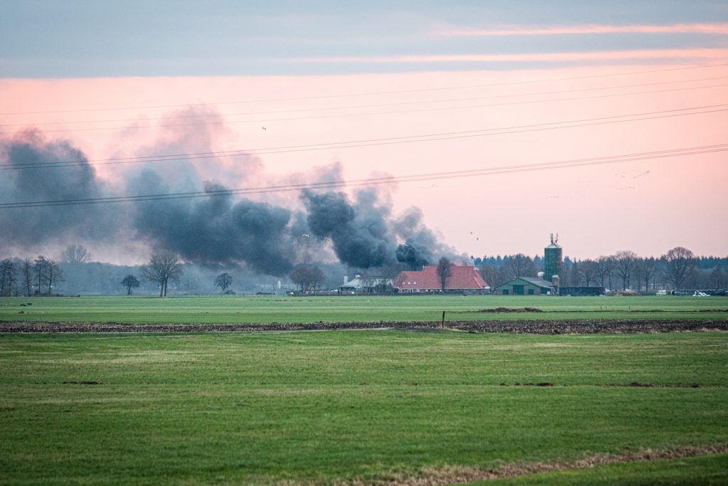 Van de stal is niet veel meer over. Met behulp van een kraan wordt het geheel verder gesloopt om de brand in haar geheel te blussen. Door de brandweer is, voor zover het nu lijkt, met succes ingezet op de redding van de overige stallen en het woonhuis.