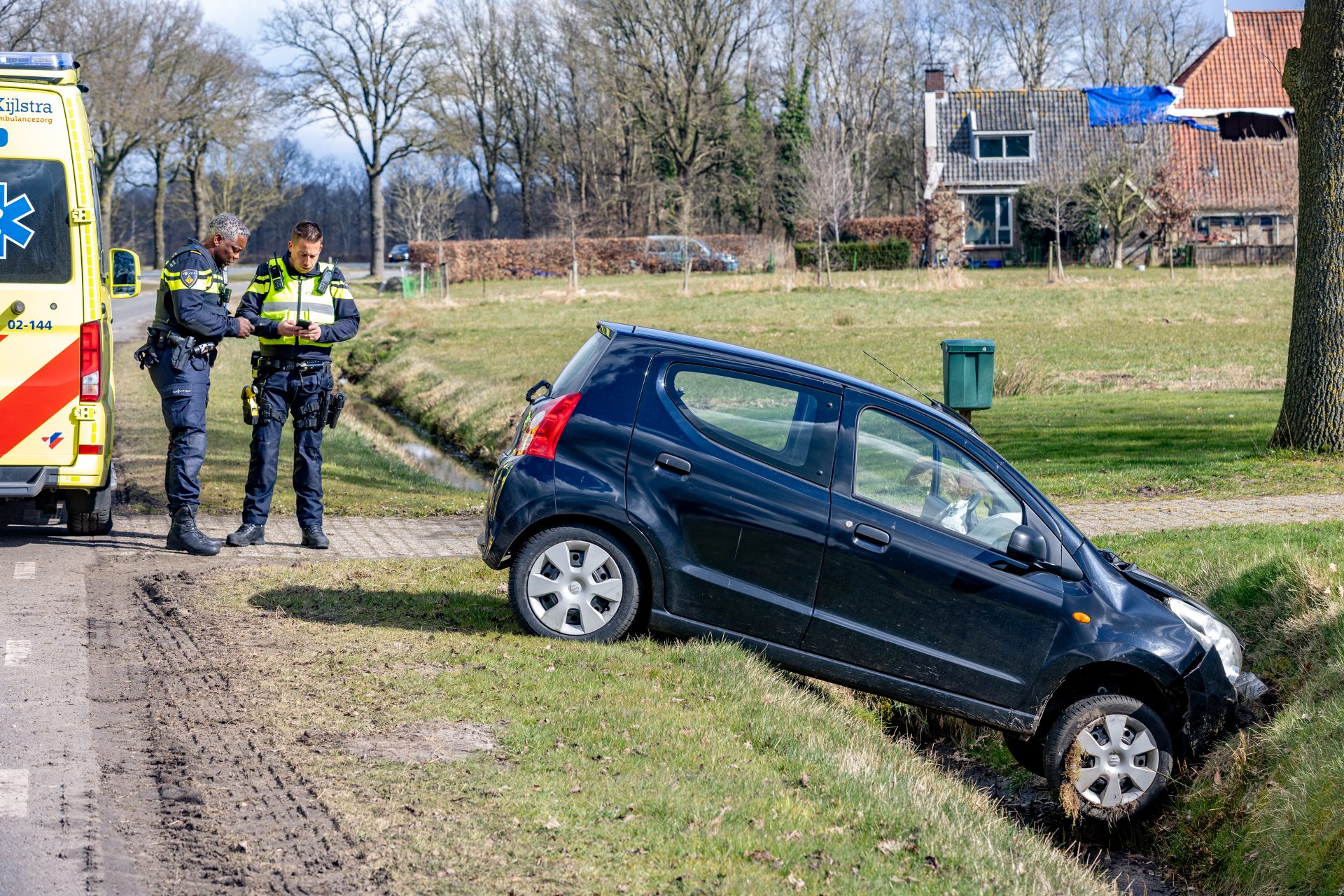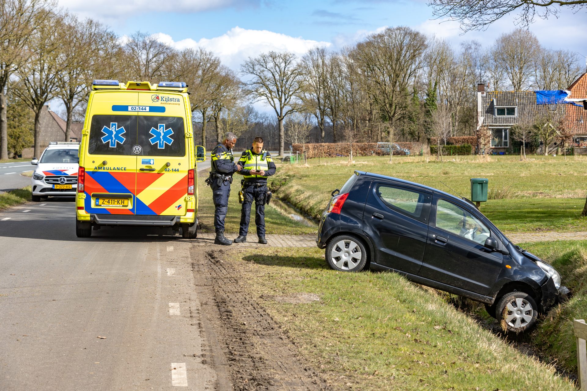 De automobiliste reed op de Bovenweg N351 toen zij door onbekende oorzaak de macht over het stuur verloor, door de berm reed en in een greppel op de parallelweg belandde.
