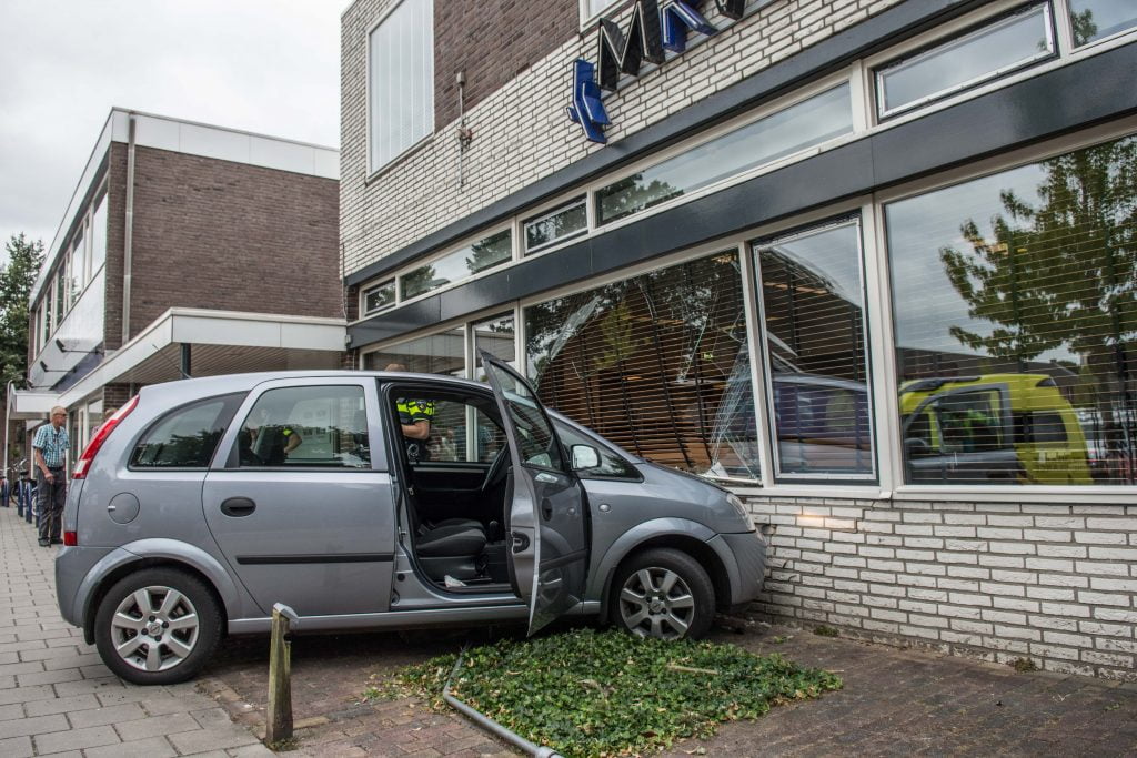 Wolvega – Op het Van der Sandeplein in het centrum van Wolvega is donderdagmiddag een auto tegen een gevel gereden.